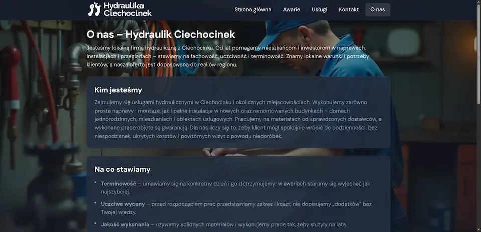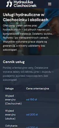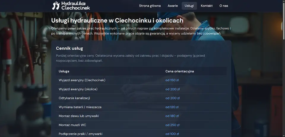 - Gotowość do reklamy (np. Google) na frazy hydraulik w regionie